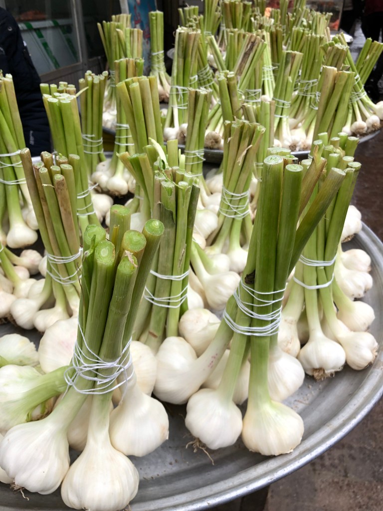 In the middle of the market street, I found some booths very interesting. See below photo, they looked like garlic , leek and spring onion too. Love so much the pretty green colour and they looked and smelled super fresh! Again, they were well organised on the small booth as if they were decoration of the market. It light up lots of energy to this busy place.