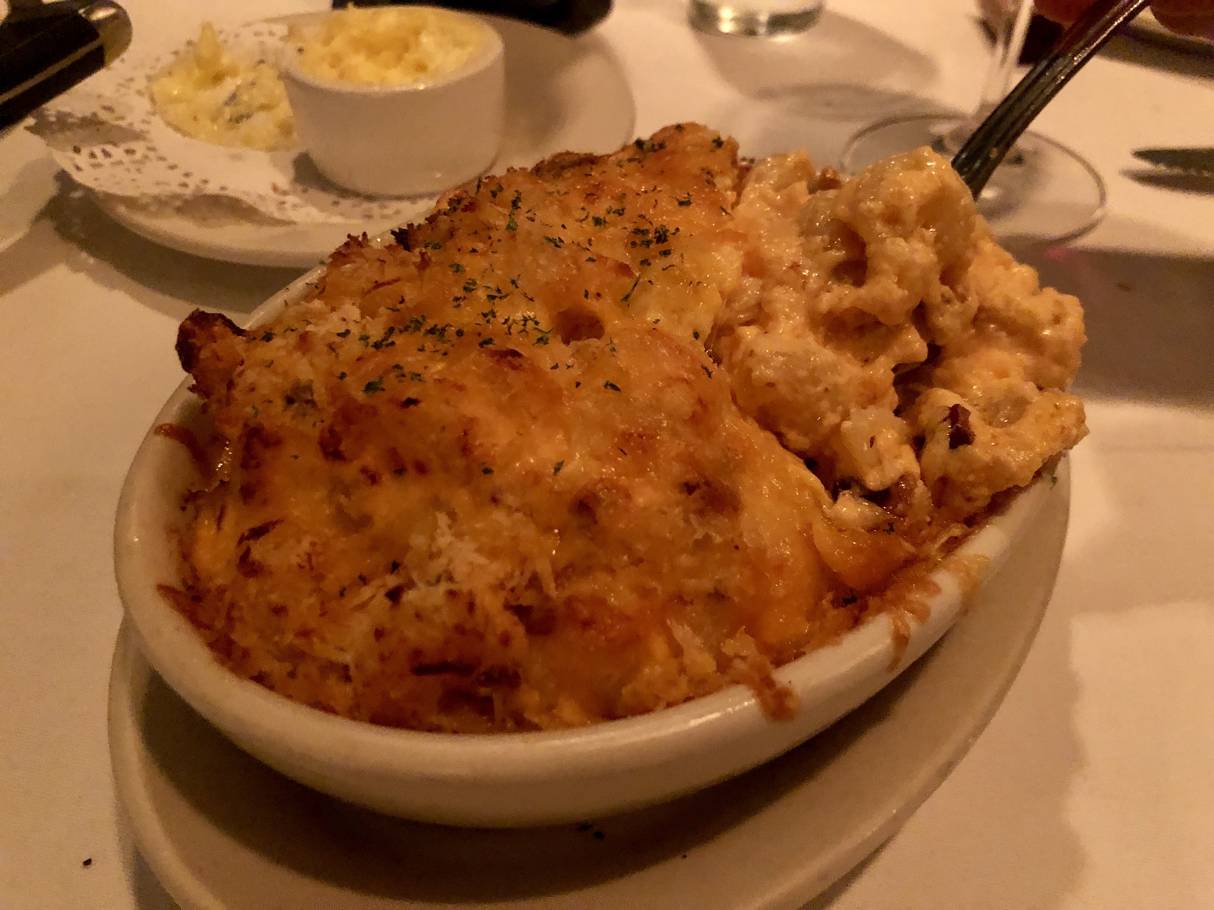 From top left : NY Strip , Porterhouse for one person, Fillet mignon , Center-cut rib eye , Porterhouse for two people , Bone-in rib eye. So what’s the missing one – prime rib ! Prime rib is only available on Friday and Saturday night that even requires pre-order 24 hours in advance. At the moment we arrived , there were still three cuts. But we took too much time for selection so when Jean decided to go for it , it’s already sold out. Anyway… …I was so tempted for the bone-in rib eye as the fat marbling was really nice and bone-in would inject more taste to the meat. Also, it would more tender than fillet mignon and prime rib as well. “Medium rare and keep juicy in the middle for me please” – that’s my order ! Jean ordered the same as no prime rib. Originally we were tempted for porterhouse. After seeing the meat itself , I know it’s not for me as I less prefer lean steak like strip and bone-in steak could introduce more flavour to the meat than porterhouse’s bone. On top of the mail . We also ordered Mac and Cheese as sides to share. We were specially warned not to order a lot by the staff as portions here were really big. Finally, Jean picked a bottle of red wine to pair with our steak, a simple one Chateau Monbousquet 2011 for us.