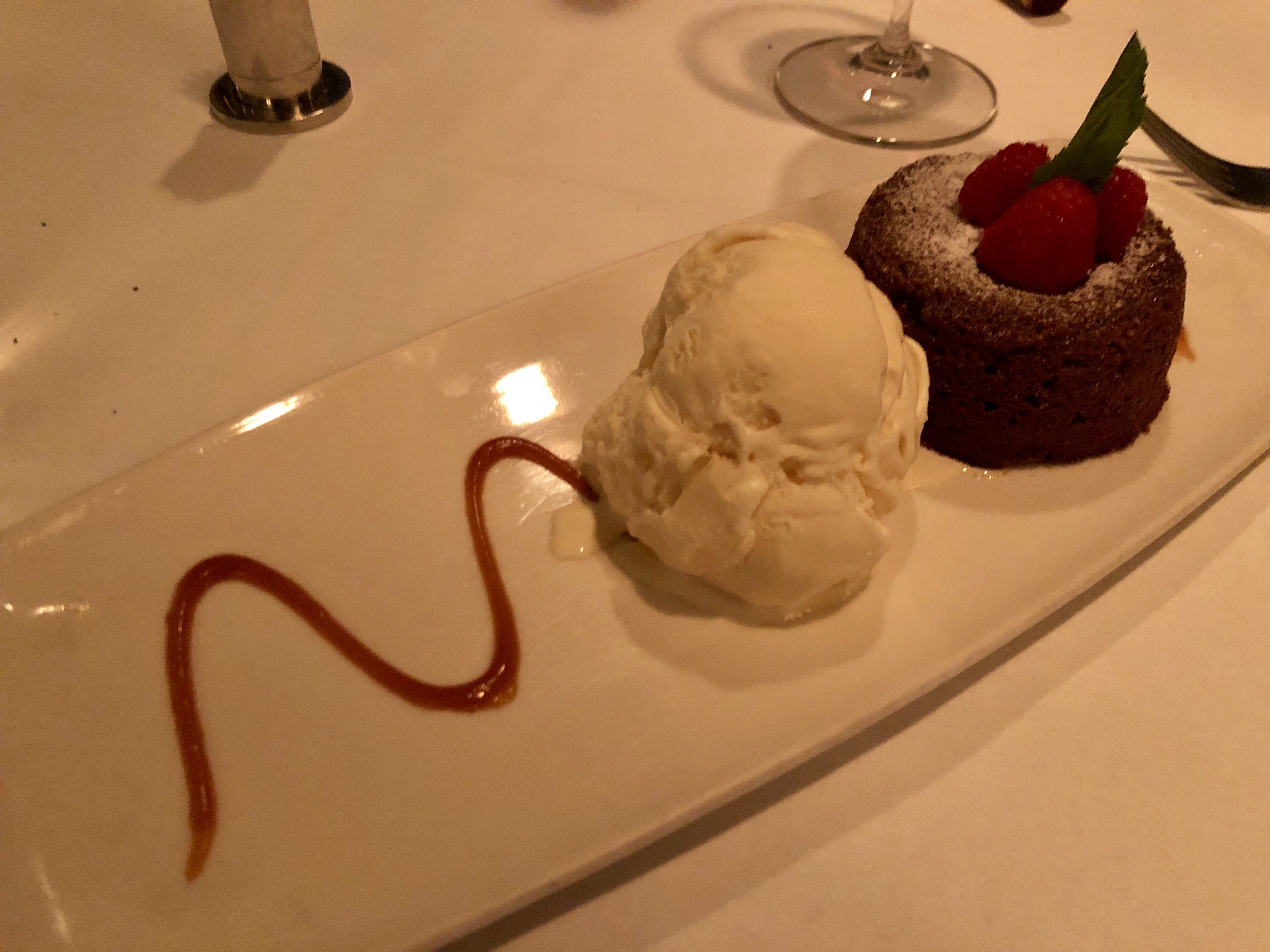 Finally , oh my god, we still had a dessert ! As a foodie , I always leave a bit room to well complete the meal with a dessert somehow. The hot centered chocolate cake came along with a big scoop of vanilla ice cream. Jean said it’s Haagen Dazs ice cream after tasting it , huh, I had no idea and didn’t pay attention as my eyes had been always on the chocolate cake lol. When I cut the cake from its centre, lava chocolate started to come out as expected. I was wondering what special with this signature dessert. Full of question marks in my mind. Until I put a slice of chocolate cake with a bit ice cream into my mouth. It was super rich in chocolate !!! I love it so much ! I concur it is definitely the signature dessert here.