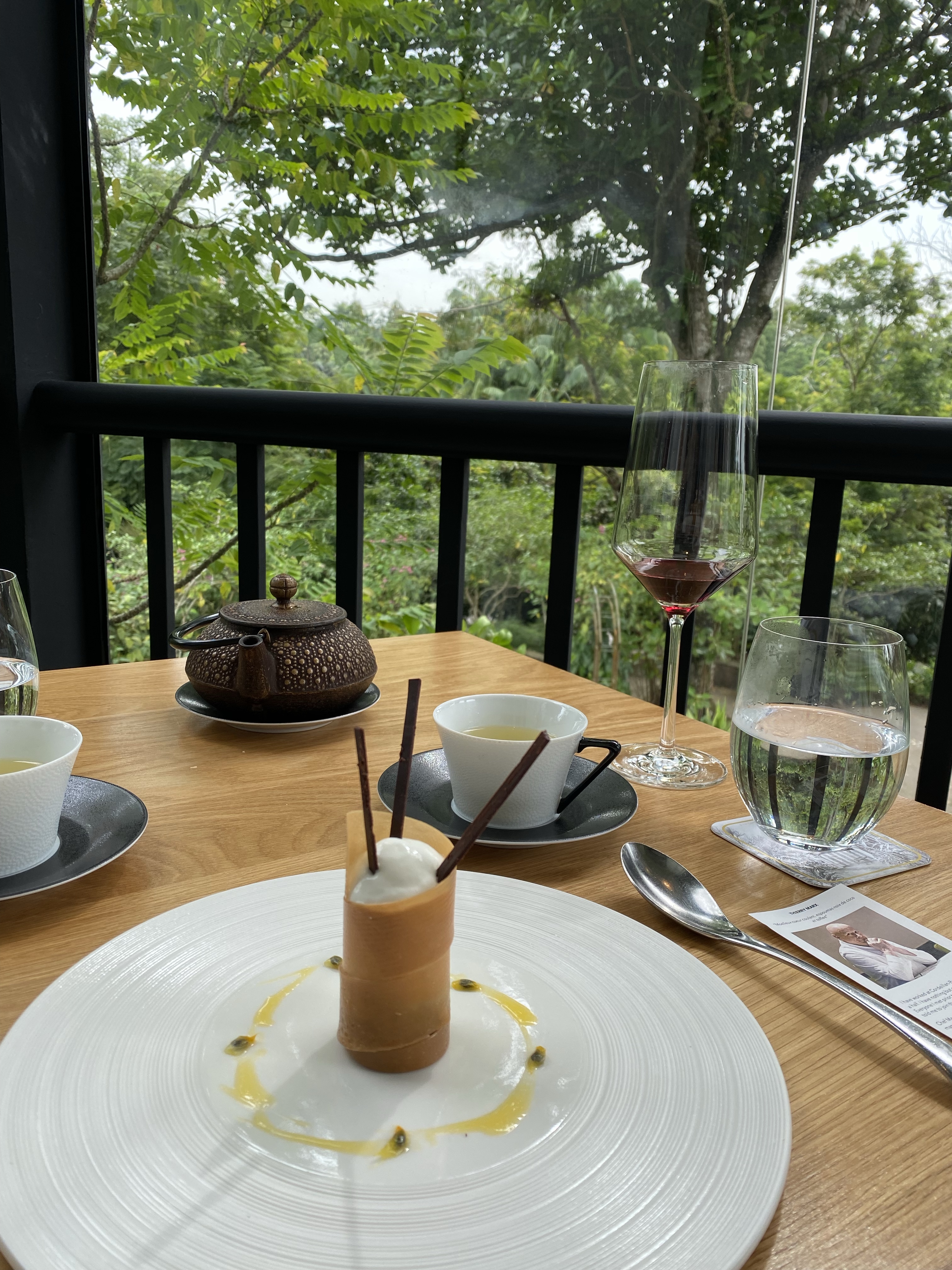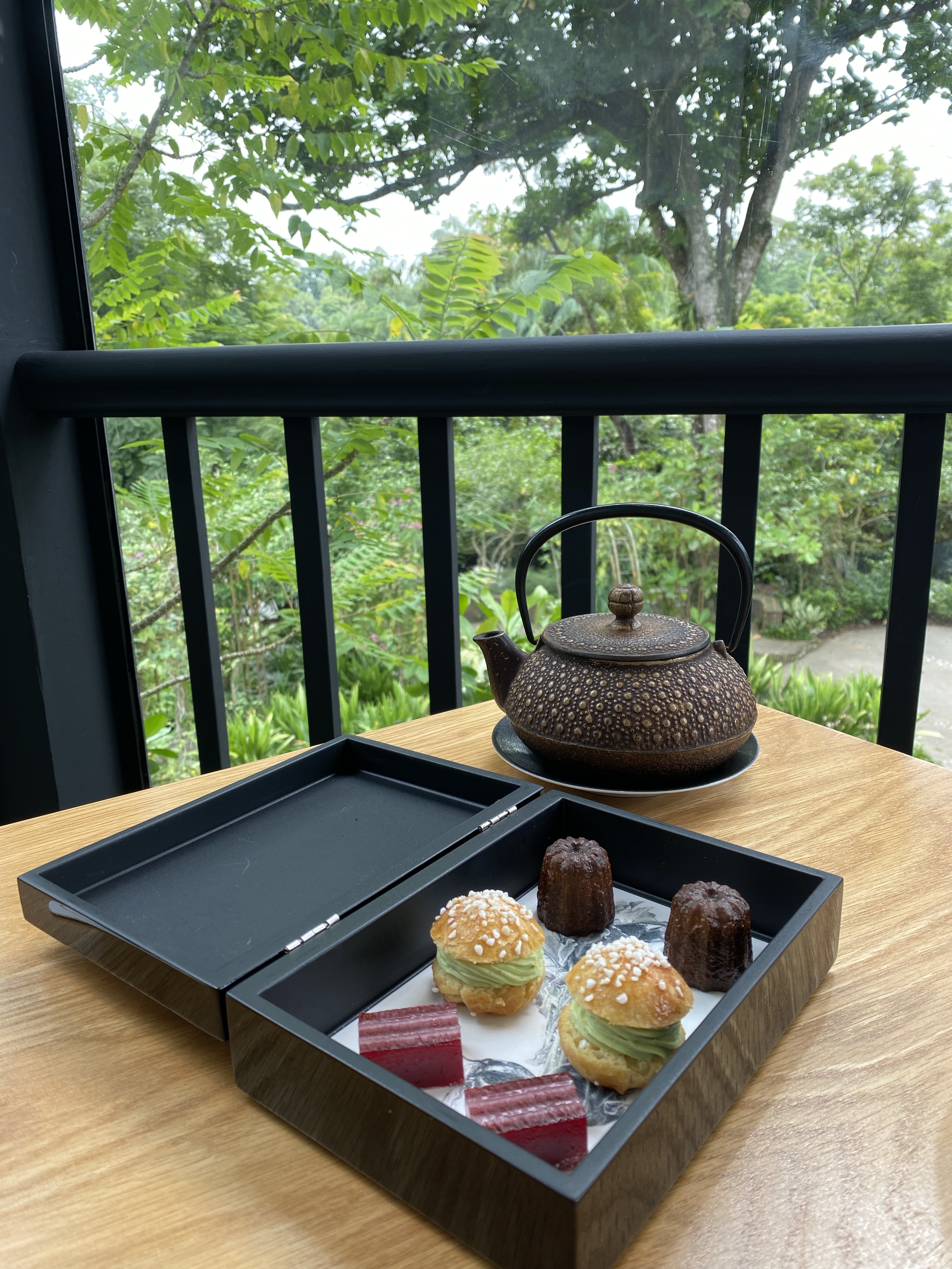 Closing with Petit Fours et my favorite Chamomile tea facing off the beautiful forest.