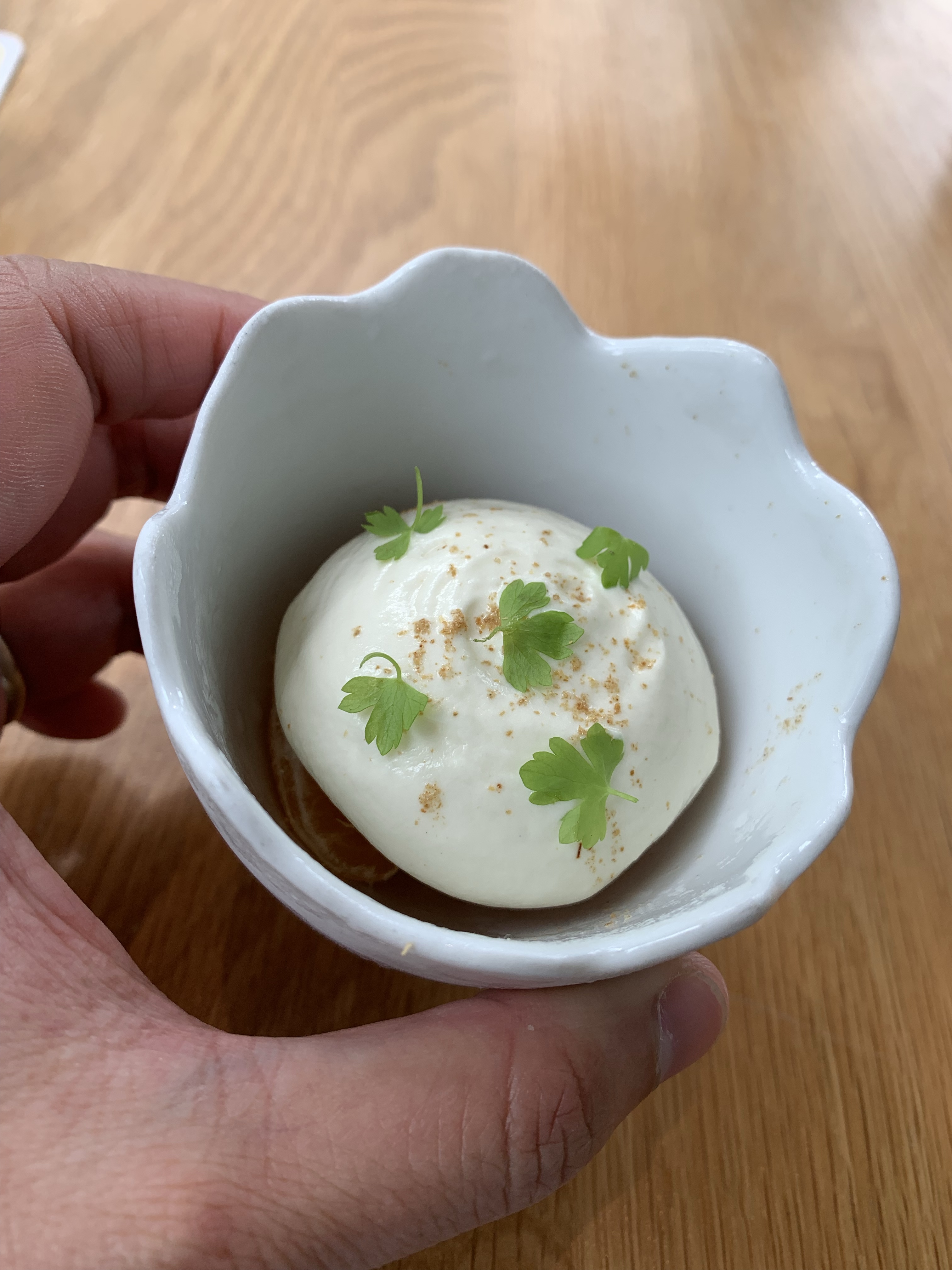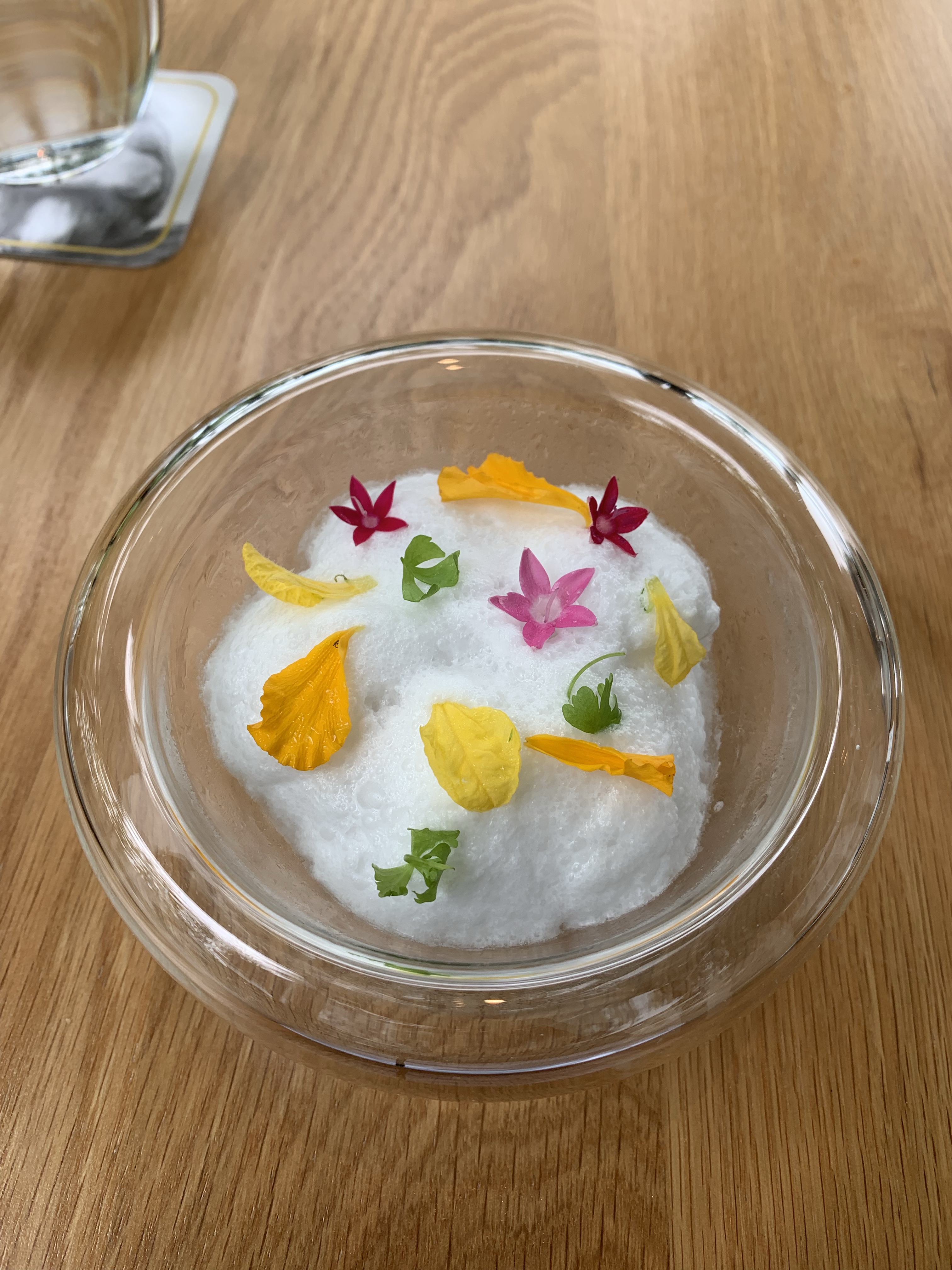 The texture of the lobster is perfectly handled – in the optimal state between crunchy and soft. The “mousse”/soup tasted marvelous with good balance between spices and sweetness.